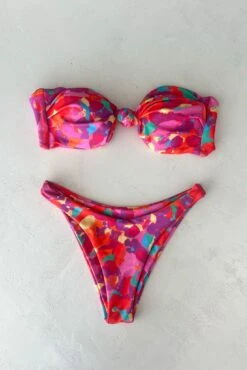 Lyndi is a knotted bandeau with removable halter straps. This top has structured sides that keep her in place, but her skimpy coverage makes her perfect for tanning! She’s got removable padding that allows the top to hold better shape.