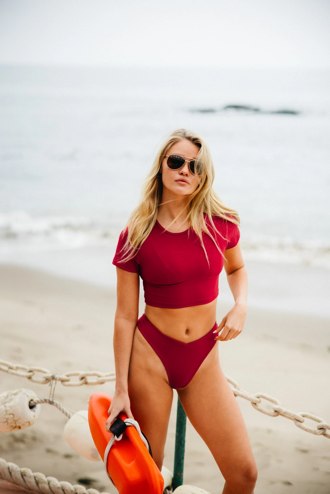 Stylish and functional, this super cropped baby tee inspired swim top is a new classic. Can be worn alone or layered above another swim top. Her super cropped length is a whole vibe. Perfect for those who might want a little extra coverage on top.