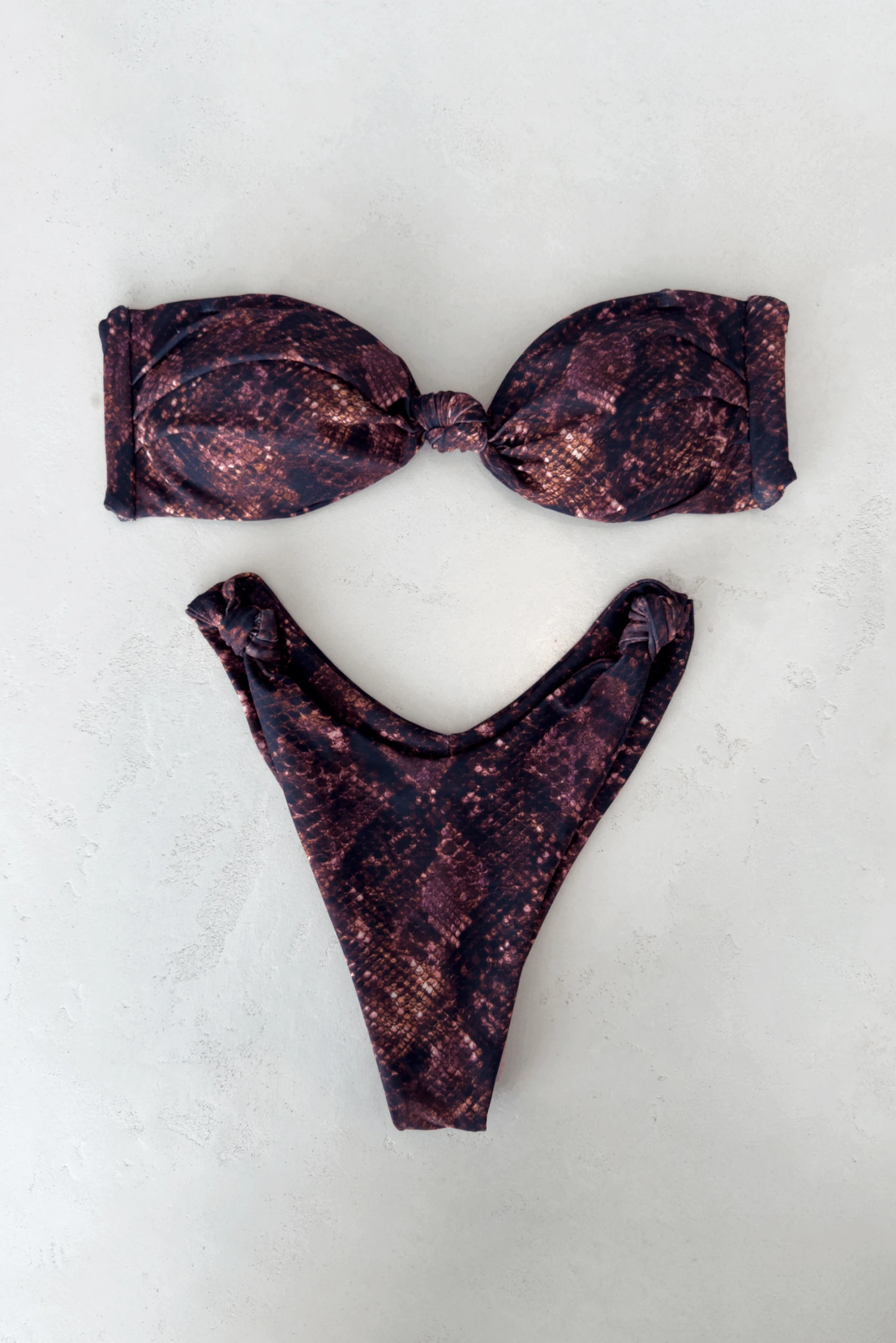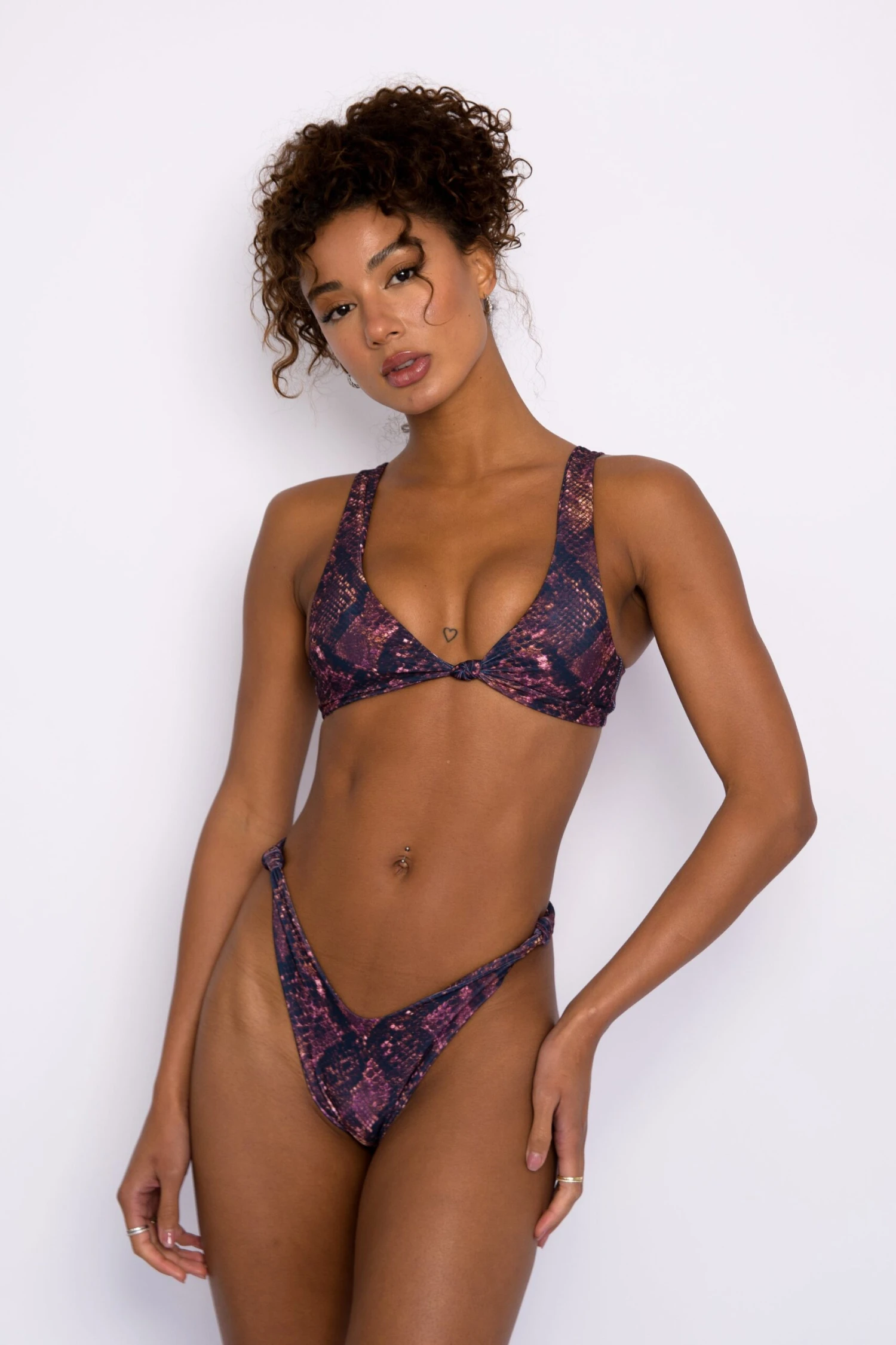 Fans of Mandi will love Suzanne: a knot-sided twist on a classic! Her high leg makes yours look miles long, and her cheeky cut cups you in all the right places. Named for one of our favorite muses, the Suzanne pairs perfectly with both Sarah and Penny!